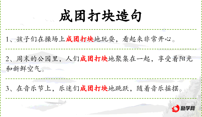 句子:“在集市上,商贩们成团打块地摆摊,吸引顾客。”