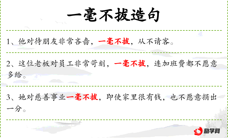 - 一毫不拔:形容非常吝啬,不愿意付出任何代价。