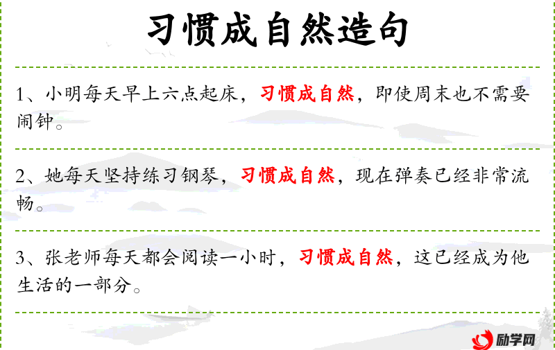 1. 【习惯成自然】 习惯了就成为很自然的事了。