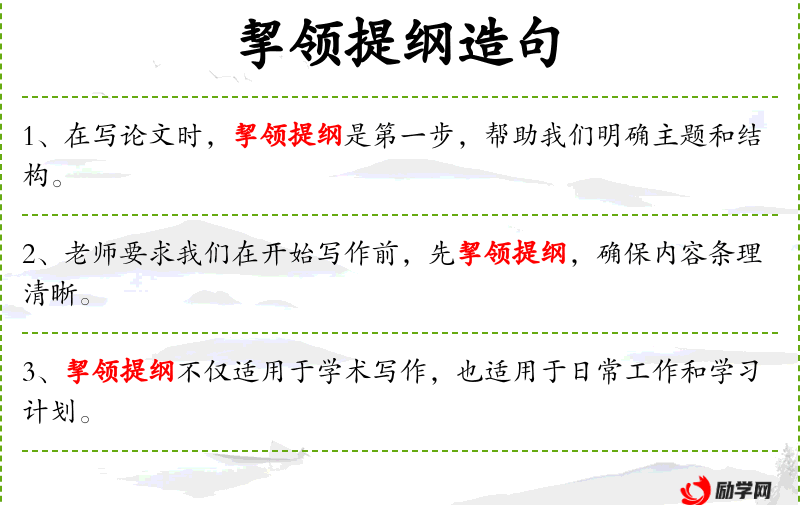 - “学生在考试准备阶段,采用挈领提纲的方法复*,能够更有效地记忆知识点。”