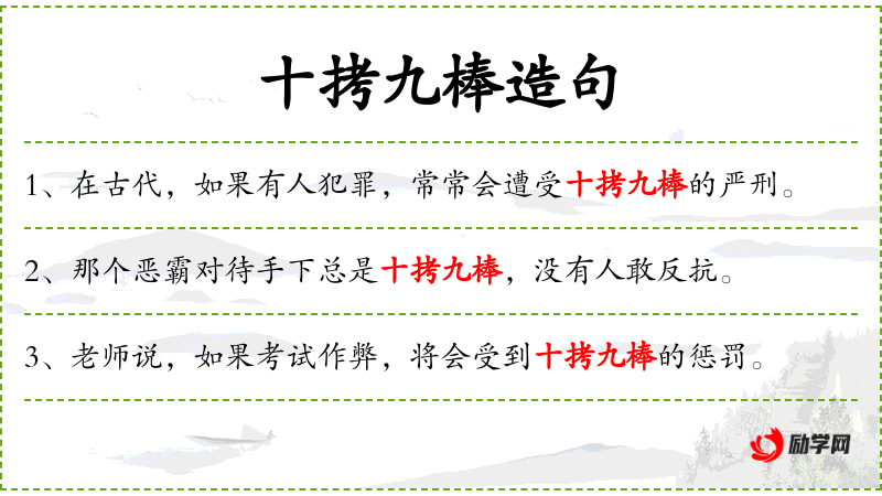 - 十拷九棒:严刑峻法、体罚