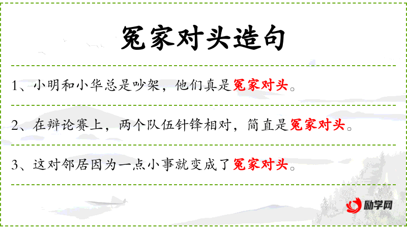 - 冤家对头:指长期对立的双方,常用于形容关系紧张。