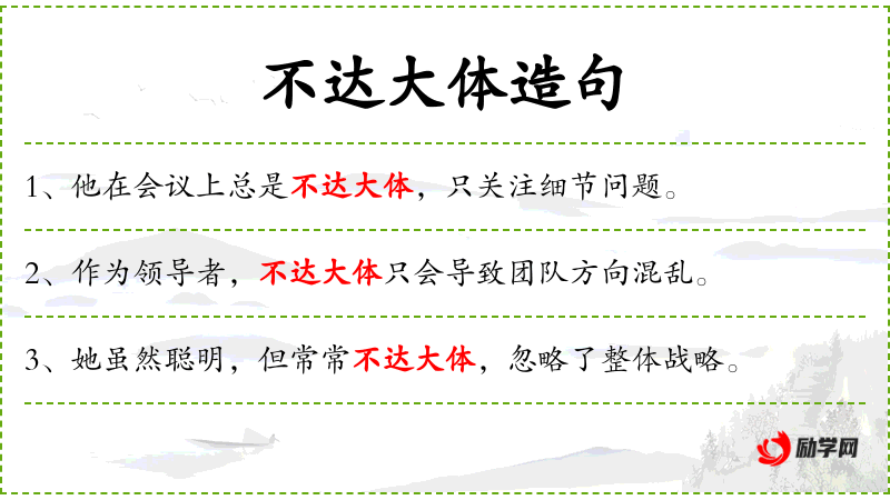 - 不达大体:不切实际、不符大局