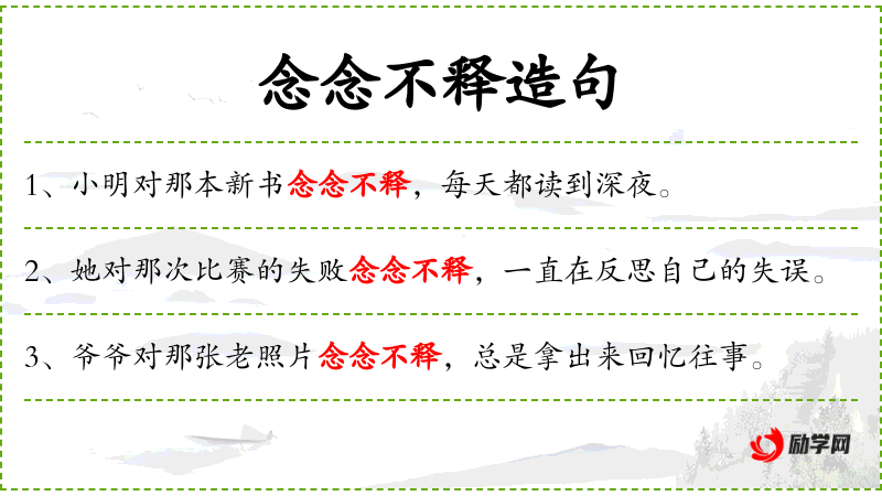 - 念念不释:形容对某物或某事非常留恋,难以放下。