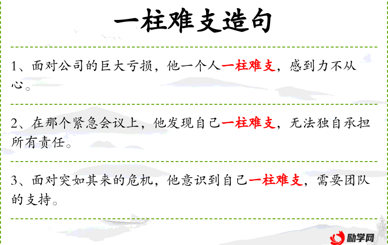 句子:“面对突如其来的危机,他意识到自己一柱难支,需要团队的支持。”