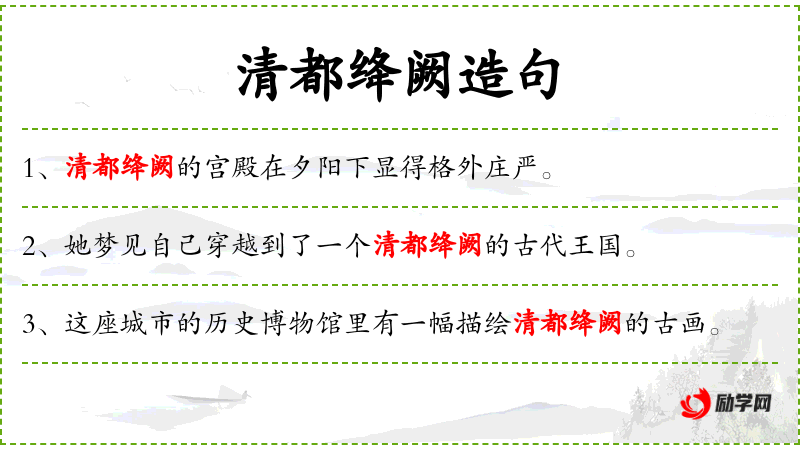 5. 【清都绛阙】 神话传说中天帝所居之宫阙。同“清都紫微”。