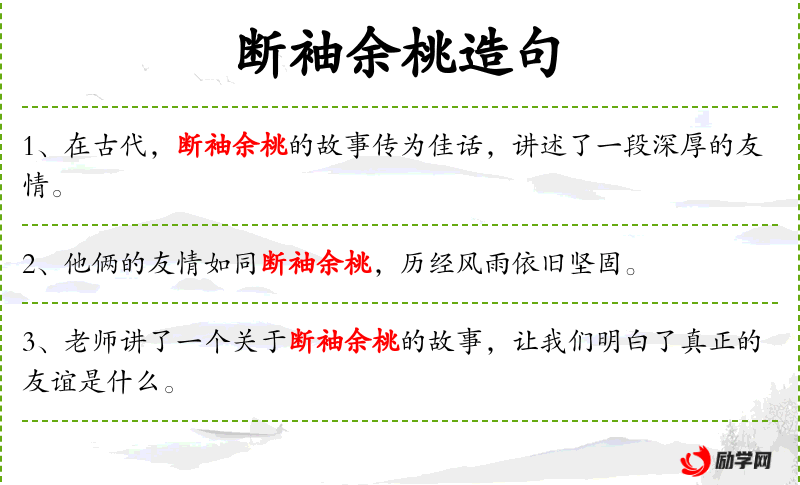 句子:“[断袖余桃的典故在现代社会中仍然有着深远的影响,提醒人们珍惜友情。]”