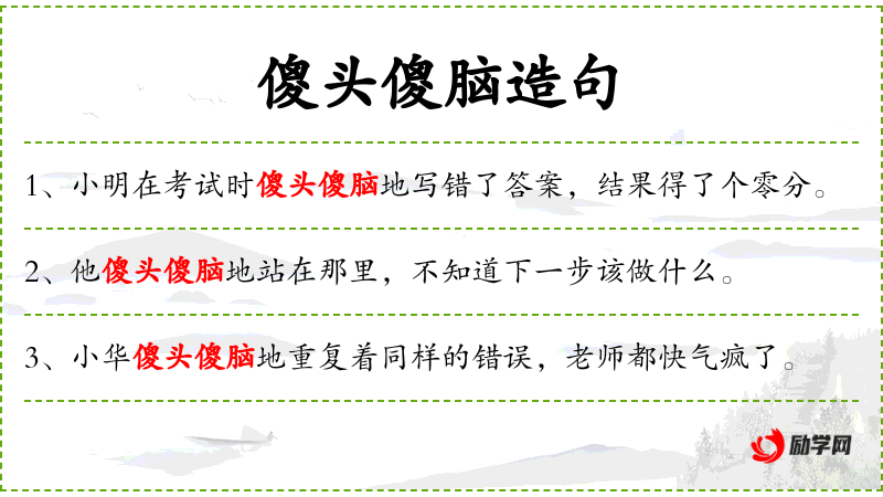 - 傻头傻脑:形容词短语,形容人看起来愚蠢或不聪明。