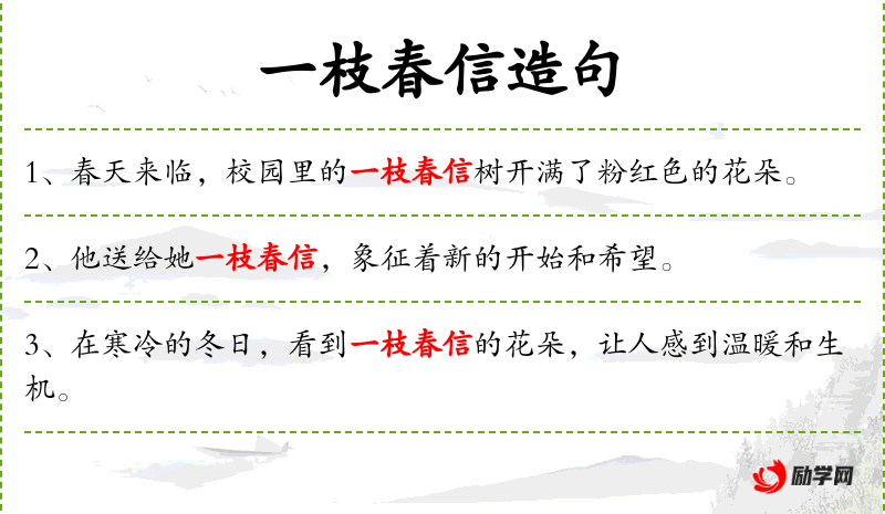1. 【一枝春信】 - 指梅花开放。