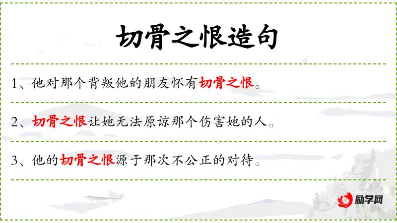 - 切骨之恨:名词短语,形容极深的仇恨。
