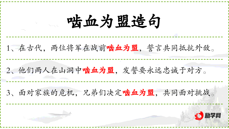 - 宾语:啮血为盟,共同面对挑战