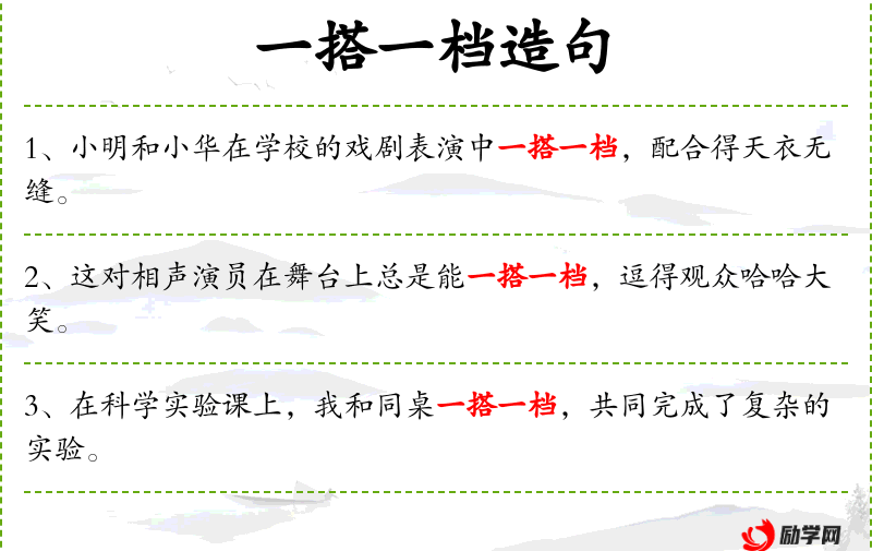 1. 【一搭一档】 - 指互相配合,彼此协作。有时含贬意。