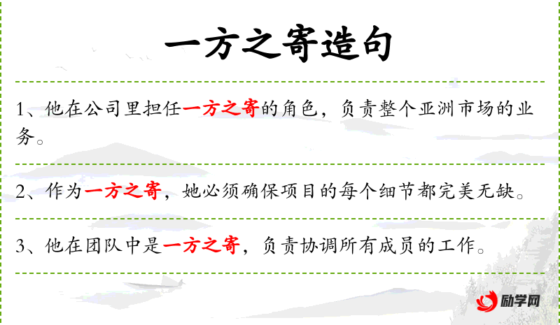 “一方之寄”是一个成语,源自**古代文学,意指在某一方面有重要地位或作用。这个成语的使用体现了对传统文化的尊重和运用。