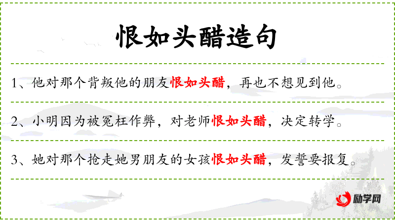 6. 【恨如头醋】 比喻非常可恶,令人痛恨。