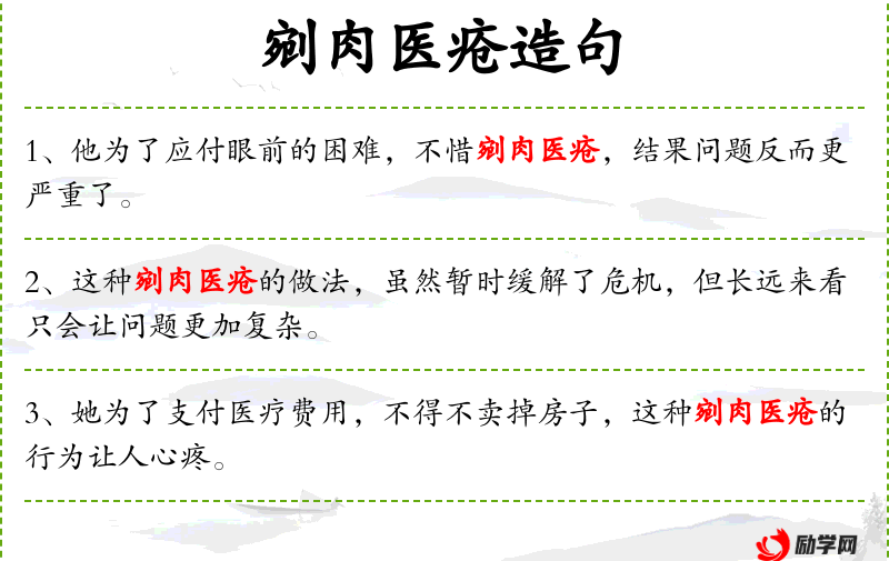 句子:“他为了应付眼前的困难,不惜剜肉医疮,结果问题反而更严重了。”