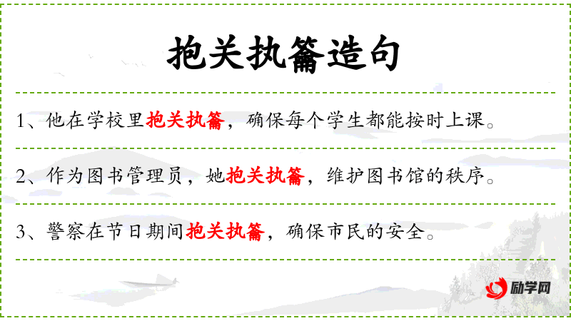 - 抱关执籥:这个成语源自古代,形容官员或管理者严格遵守职责,不放松管理。在现代语境中,它强调了职业道德和责任感。