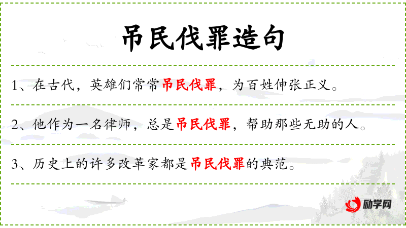 - 吊民伐罪:这是一个成语,源自**古代文献,体现了古代社会的正义观念。