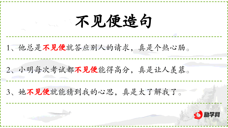 不见便造句