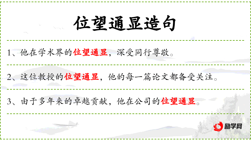 - 位望通显:指地位和声望都非常显著,通达显赫