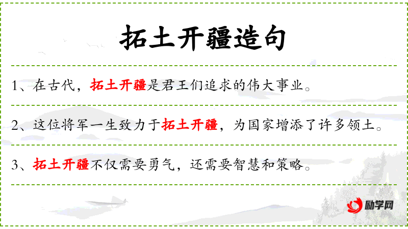 - 拓土开疆:指扩张领土,开辟新的疆域。