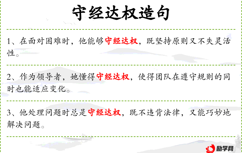 - 守经达权:成语,指坚守原则并灵活运用权力。
