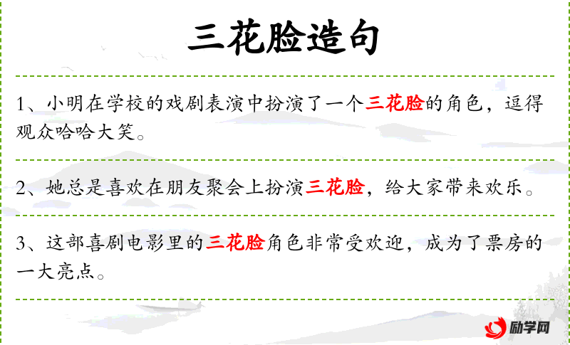 1. 【三花脸】 - 传统戏曲中丑角的俗称。亦指现实生活中卑微的坏人; 指丑角的脸谱。