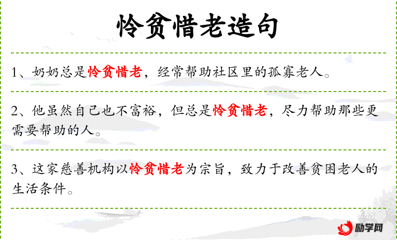 6. 【怜贫惜老】 爱护老人,同情穷人。
