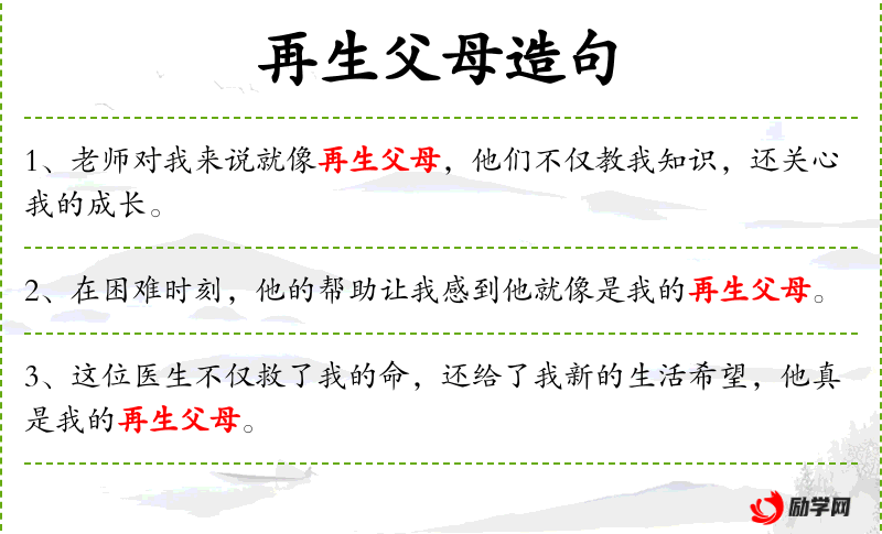 - 再生父母:比喻对自己有重大恩情的人,多指救命的恩人。