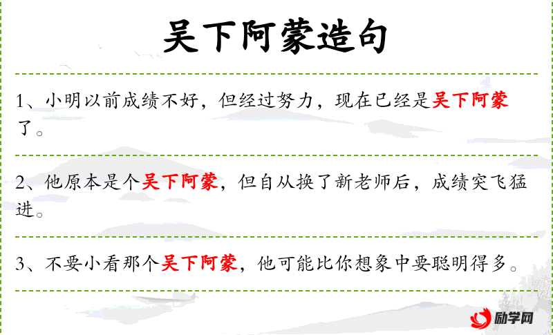句子:“她从一个吴下阿蒙变成了班上的学*榜样。”