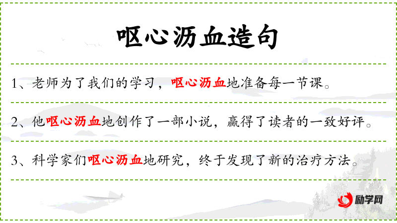 - 呕心沥血:形容非常用心和努力,付出了极大的心血。