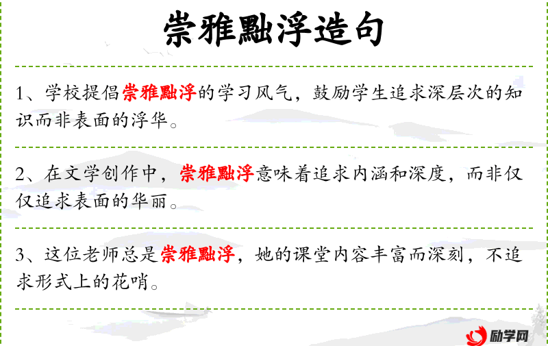 - 崇雅黜浮:推崇高雅,摒弃浮华。