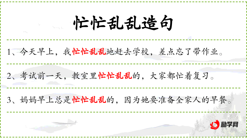 - 使用“忙忙乱乱”表达了学生完成作业时的紧张和无序状态,可能隐含了对作业量或难度的一些不满。
