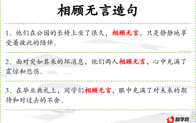 1. 【相顾无言】 - 指彼此相对说不出话来。