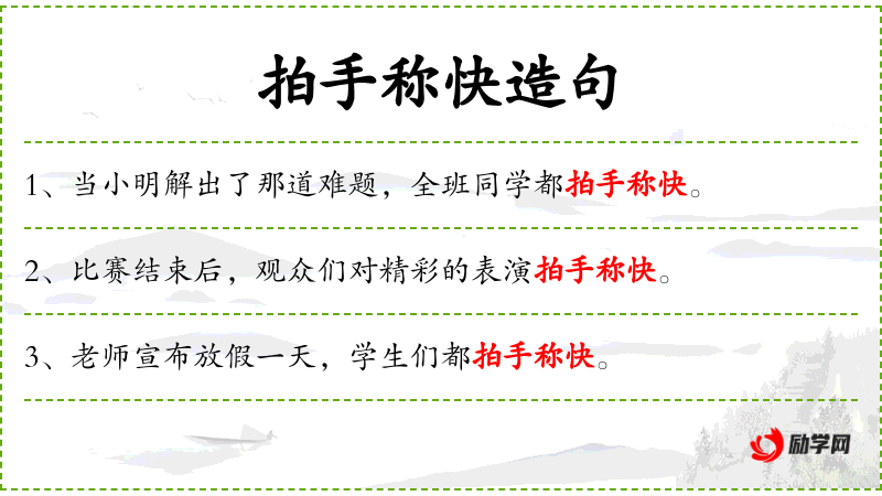 “拍手称快”是一个典型的中文表达,用来形容人们因为高兴或赞同而鼓掌。这反映了中文文化中对正面**的庆祝方式。