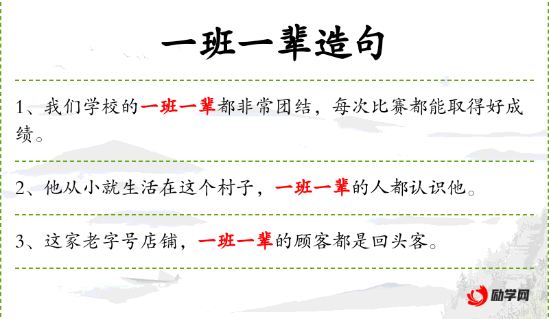 句子:“我们班的一班一辈同学都很努力,学*成绩一直名列前茅。”