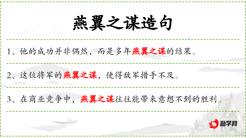 3. 【燕翼之谋】 - 燕:安;翼:敬。原指周武王谋及其孙而安抚其子。后泛指为后代作好打算。