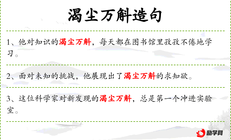 2. 【渴尘万斛】 - 形容十分想念。