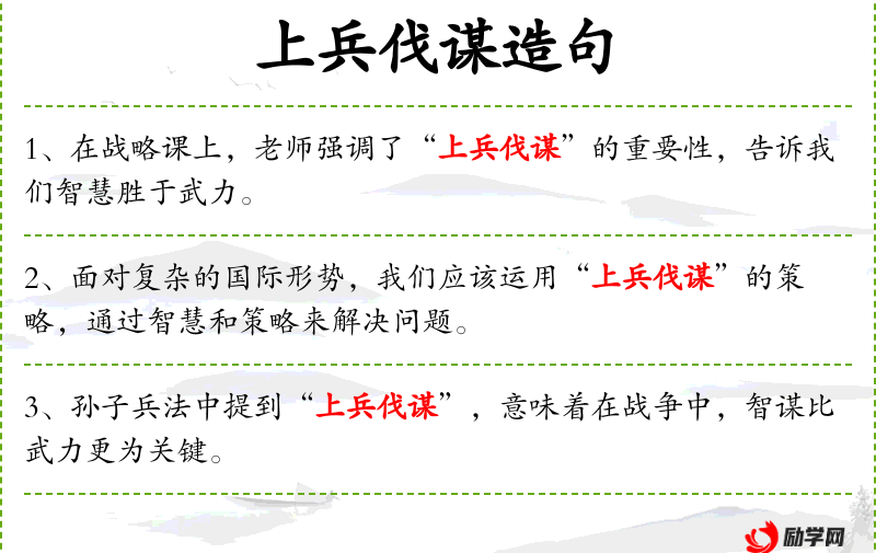 - 上兵伐谋:这是一个成语,意为用智谋取胜,而非武力。