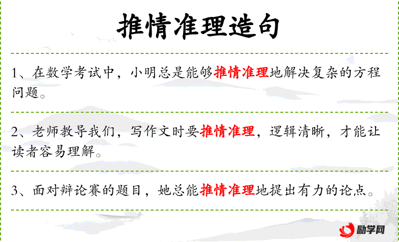- 推情准理:可能是一个误用或特定术语,通常应为“推理”或“逻辑推理”。