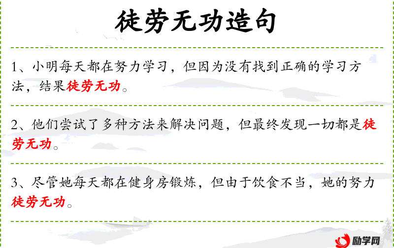 - 尽管小明每天都投入大量时间学,但因为没有采用合适的学策略,他的努力最终徒劳无功。