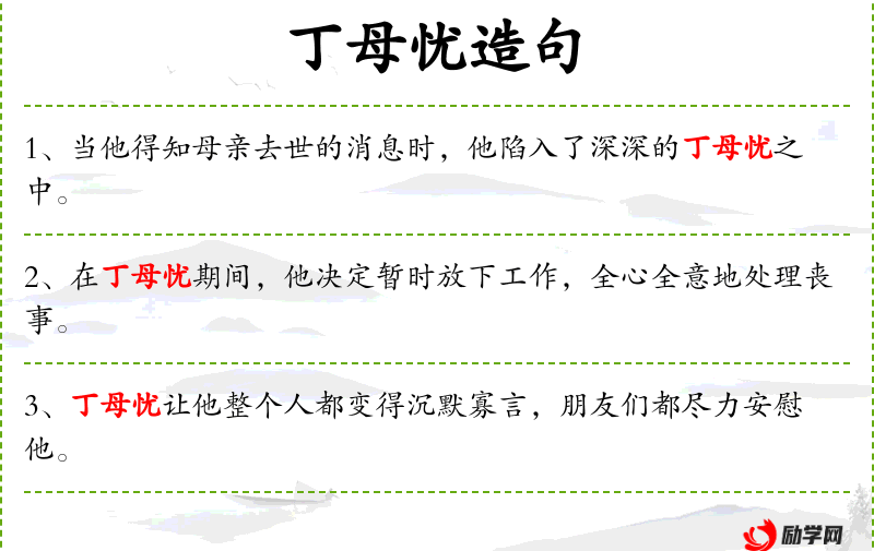 1. 【丁母忧】 - 遭逢母亲丧事。
