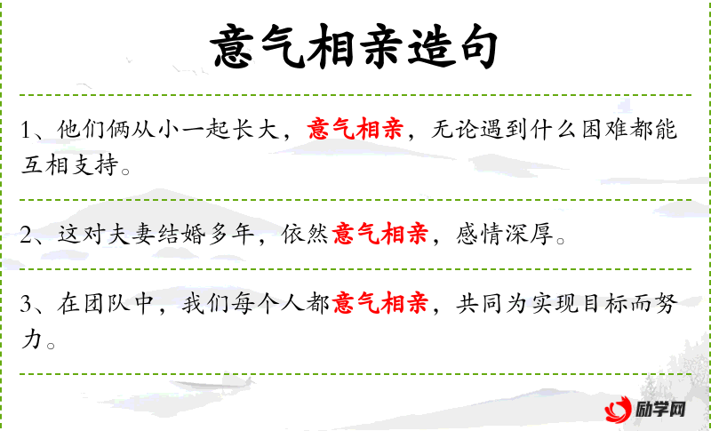 - 意气相亲:志同道合、情投意合