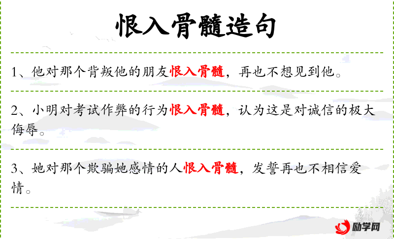 - 恨入骨髓:形容非常憎恨,达到了极点。