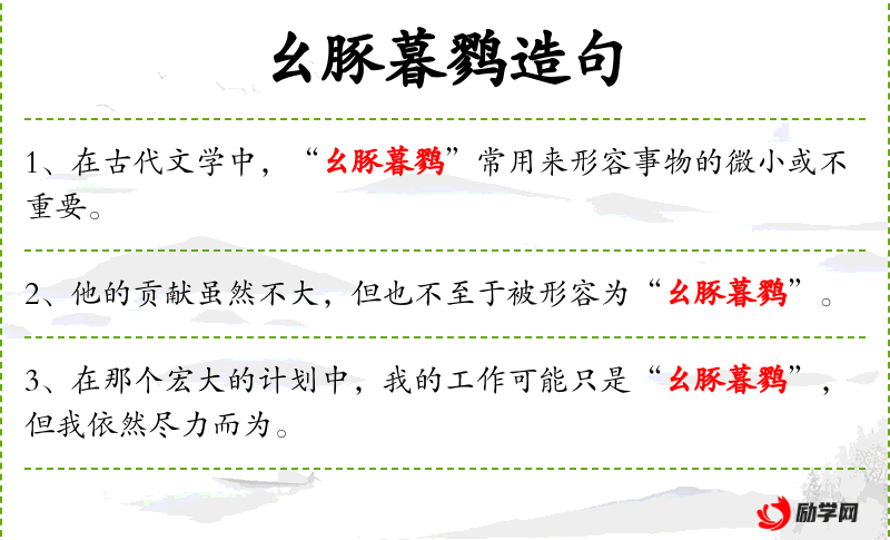 - 幺豚暮鹨:这是一个成语,用来形容事物的微小或不重要。
