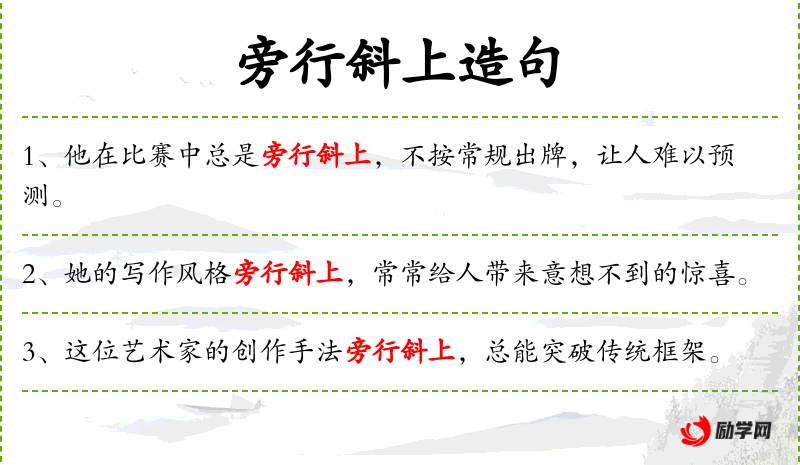 “旁行斜上”这个短语可能源自**传统文化中的“旁门左道”,在这里被赋予了正面的意义,强调创新和独特性。