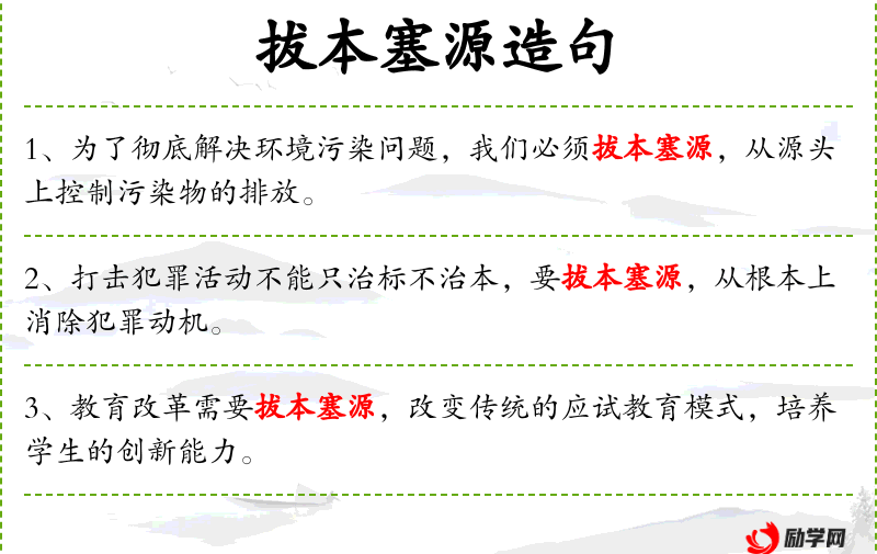 - 成语:“拔本塞源”源自《左传·僖公二十四年》,意为从根本上解决问题。