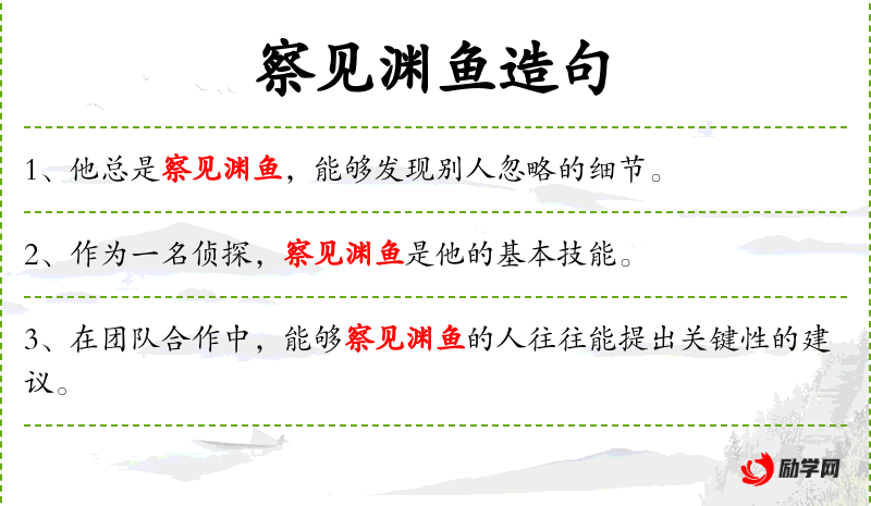 - 察见渊鱼:比喻能够洞察深层次问题的人。