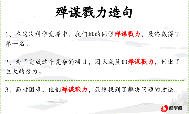1. 【殚谋戮力】 - 竭尽智谋和精力。