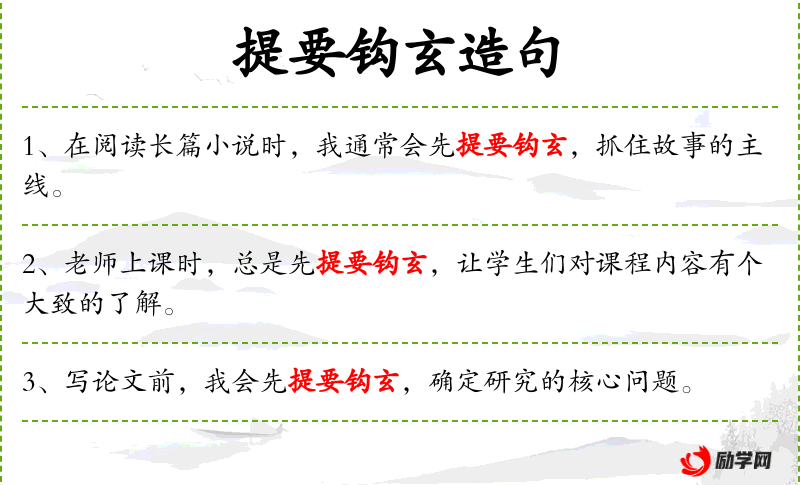 - 成语典故:“提要钩玄”可能源自古代文献整理的方法,强调提取核心内容。