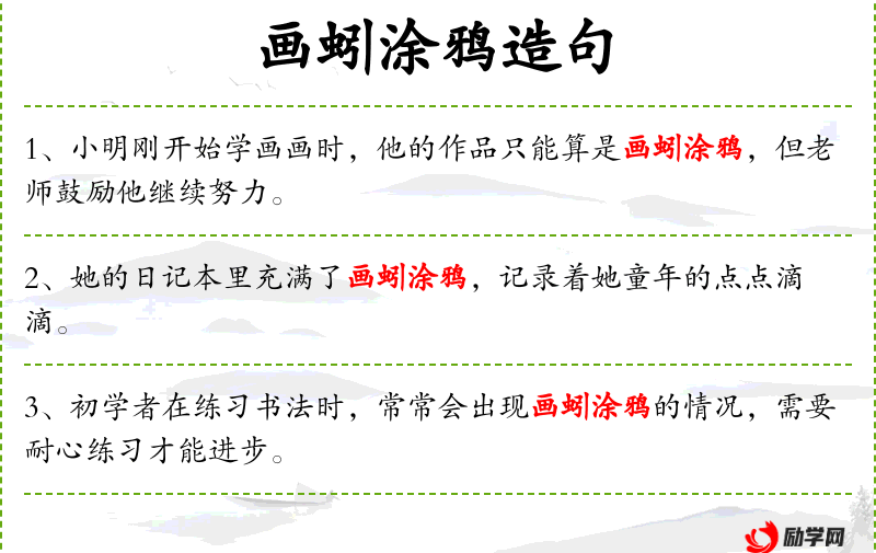 4. 【画蚓涂鸦】 - 形容书法或文字拙劣。多用作谦词。